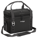 Designed for maximum ice retention this soft-sided cooler is ready for tailgating picnics camping and more adventures. Rugged 300D ripstop polyester with PVC coating 1-inch thick high-density closed-cell insulating foam Heavyweight leakproof PEVA lining Interior PVC-coated zippered mesh pocket Top storage shock cord Detachable adjustable padded shoulder strap Contrast Eddie Bauer logo printed on front panel and shoulder pad Front and back daisy chain attachment system Never-lost bottle opener Webbing handles Front slip pocket Dimensions: 11 h x 14 w x 8.5 d; Approx. 1 309 cu. in.