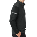 Combining a stretch woven, a comfortable knit and welded details, this cover-up delivers a broad range of motion with a technical look. Dri-FIT moisture management technology ensures pure performance. The design features a reverse coil zip-through collar, open cuffs and an open hem. The welded contrast Swoosh design trademark is on the left sleeve. Body made of 4.7-ounce, 90/10 polyester/spandex; upper back panel and sleeves made of 6.9-ounce, 100% polyester Dri-FIT fabrics.
