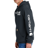 Show your Carhartt pride in this versatile, layerable sweatshirt that features a bold Carhartt signature logo down the left sleeve.