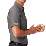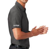 This sophisticated tonal heather polo has a slight slub texture and performs with moisture wicking and stretch for a polished look. 5.2-ounce 90/10 poly/spandex with stay-cool wicking technology OGIO heat transfer label for tag-free comfort Self-fabric collar with collar stand OGIO woven tab at center back collar Angled 3-button placket with flat matte black silicone buttons Forward side seams Set-in open hem sleeves Black reflective O on left sleeve