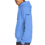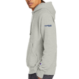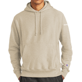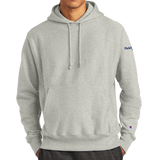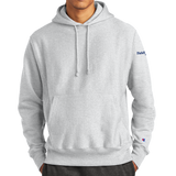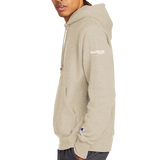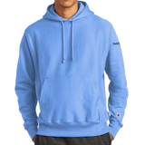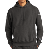 12-ounce 82/18 cotton/poly fleece 78/22 cotton/poly (Oxford Grey) 60/40 cotton/poly (Charcoal Heather) Reverse Weave cross-grain cut resists shrinkage Two-ply hood with dyed-to-match drawcords 1x1 rib knit side panels sleeve cuffs and hem Front pouch pocket Embroidered Champion C logo at left cuff Woven back neck label